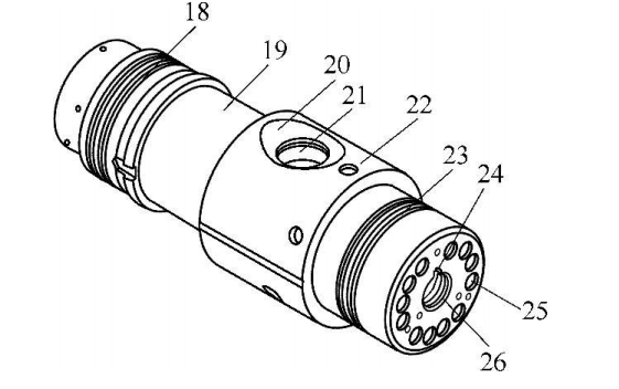 如圖2所示,承壓接頭體17材料為高磁導率高強度材料,比如高磁導率高強度沉淀硬化不銹鋼17-4PH。使用此種材料一方面可以對多路信號進行有效地電磁屏蔽,另一方面可用來承載140MPa的環境壓力。承壓接頭體17的左端為容納電子線路線槽的常壓
